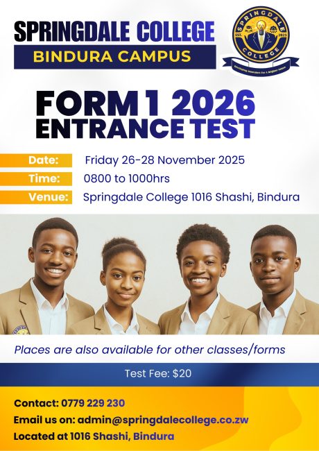 Venue: Springdale College Campus – 1016 Shashi, Bindura